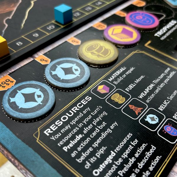 Но добрые люди делают неопреновые поля для различных игр. В том числе и для Arcs. И как раз есть расширенный вариант, где значки ресурсов побольше, да и в придачу место для карт гильдии. Не сказать что неопреновое поле для Arcs прям необходимо, поскольку это покрытие очень удобно для карточных игр (удобно выкладывать и брать со стола), а на поле карт не сильно много. Но солидности прибавляет.