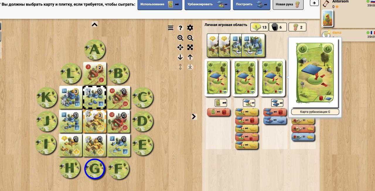 Само строительство идёт вверх и дополняет колоду новыми картами и возможностями, а урбанизация идёт вширь, давая вам ресурсы от окружающих ортогональной зданий, и чем они выше — тем нам в данном случае лучше. В конце наиболее влиятельный получает сумму всех высот зданий в районе, а проигравший только за свои. Если район только ваш, то вы получите удвоенное ПО. Поэтому всегда, даже если нет возможности перестроить здание и превратить в своё, желательно впихнуть здание уровнем один нужного цвета прилегающей рядом, или же перестроить соседнее в нужный цвет, а может это ещё и создаст мост между несколькими разделёнными районами, превратив их в один и вы ещё и окажетесь здесь хозяином.