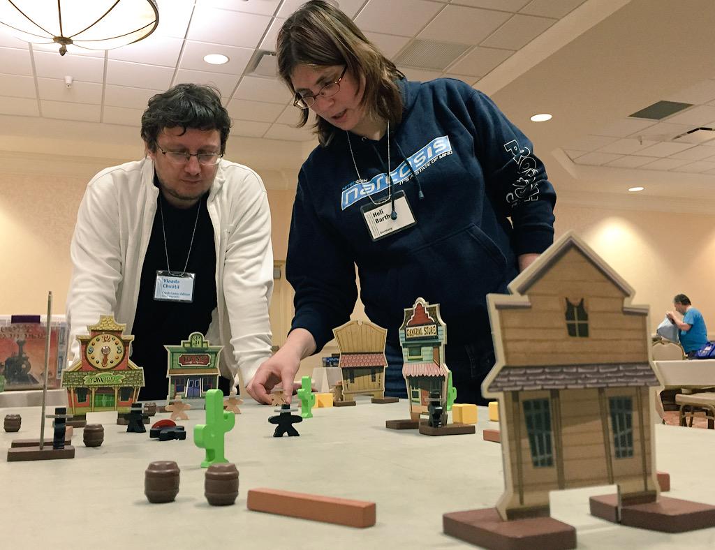 Кстати, о Фризе. Ещё до начала «Съезда» он начал тестировать «504», свой большой релиз для Spiel-2015, в торонтском «настольном» кафе Snakes & Lattes. На «Съезде» к нему присоединился Хеннинг Крёпке (Henning Kröpke), его коллега по 2F-Spiele, и тестирование продолжилось.