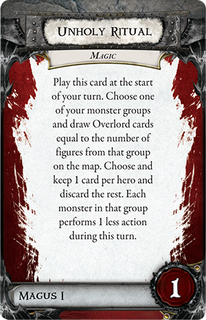 Оверлорд, наконец, получает карту Unholy Ritual и немедленно играет её на бритвокрылов, получив в руку 4 карты. Среди них и второе ускорение.