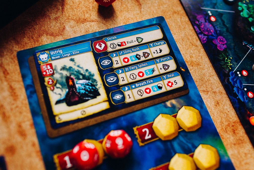 Мощные действия, как правило, помогают в бою. Бои в Agemonia разрешаются бросками кастомных D6, грани которых наносят 0 урона (если только не потратить выносливость. Еще одно применение выносливости), 1 урона, 2 урона и 1 урона + дополнительный бросок. Да-да, тут есть взрывающиеся кубики. Кому не нравится бросать все больше и больше кубиков?