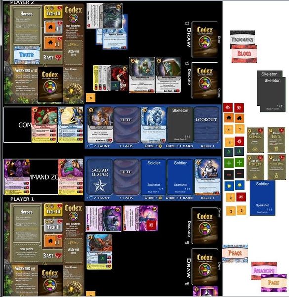 14) В Войны Магов можно играть через специальную программу OCTGN на компьютере, правда на англ языке. Там многие моменты удобно заскриптованы и немного разобравшись с управлением можно играть не выходя из дома. Для Кодекса есть неофициальный мод для ТТС стима.