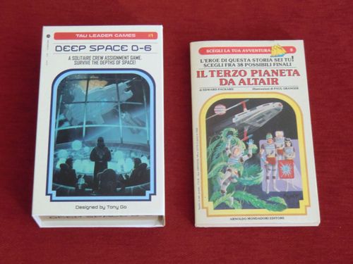 Коробка Deep Space D-6 размером со среднюю книгу, причём с обложкой в духе книг-игры из серии «Выбери себе приключение». Внутри — 4 листа кораблей, 6 кастомных кубиков членов экипажа, 1 кубик угрозы и колода из 54 крошечных карточек угроз. Всё выдержано в едином стиле: сухом, лаконичном, по большей части бело-чёрным. Иллюстрации похожи на чертежи из технической документации или тактических дисплеев. Этот минимализм прекрасно сочетается с выбранным сеттингом. Как по мне, тут превосходно выдержан утилитарный стиль.
