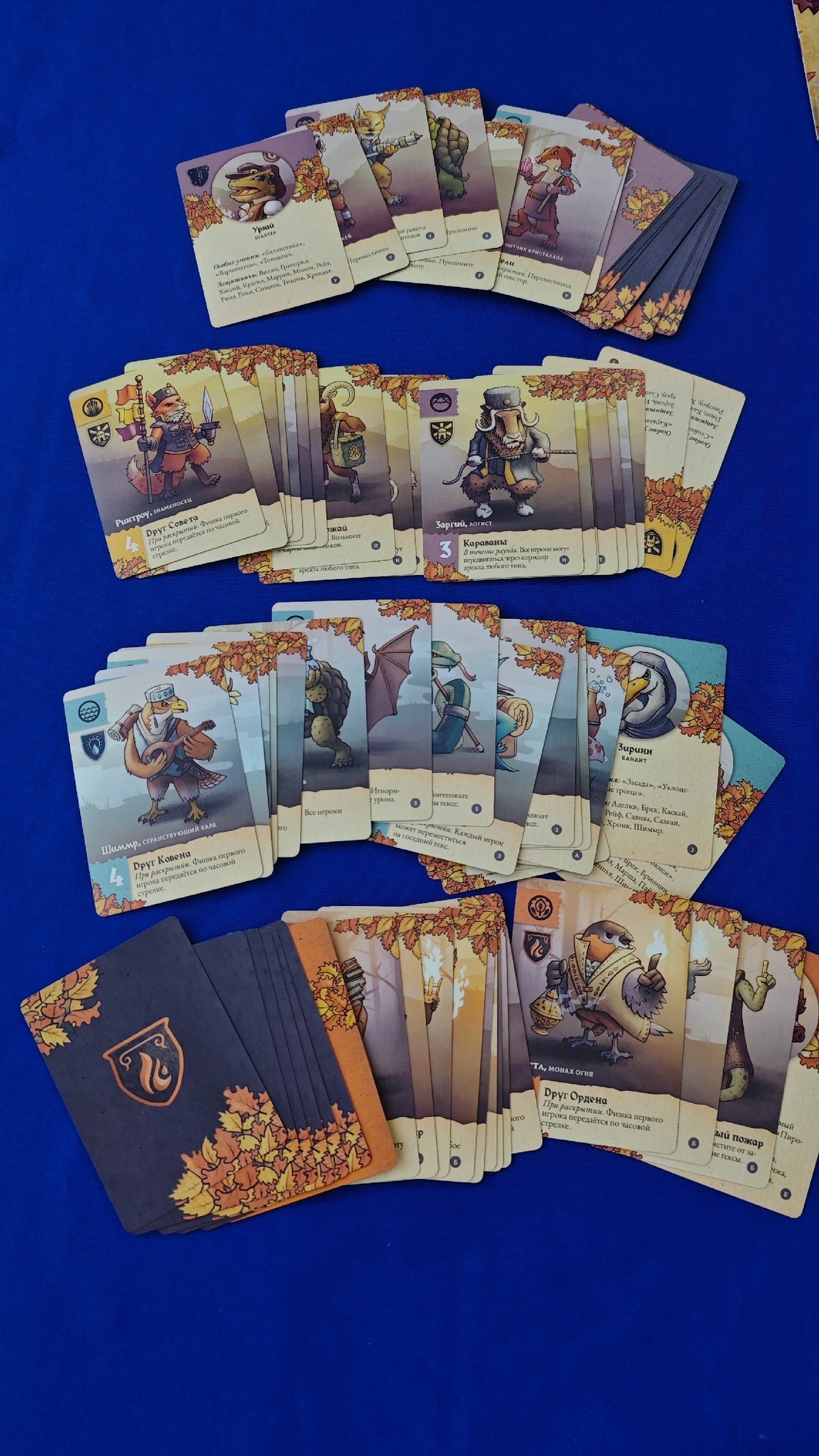 Каждый игрок выбирает себе фракцию, которой он будет играть. В каждой фракции есть два лидера, вы выбираете одного из них и собираете его колоду карт. Также у вас будет диск фракции с треком поддержки и ячейками полученного урона. Возьмите по три карты защитников из колоду в руку.