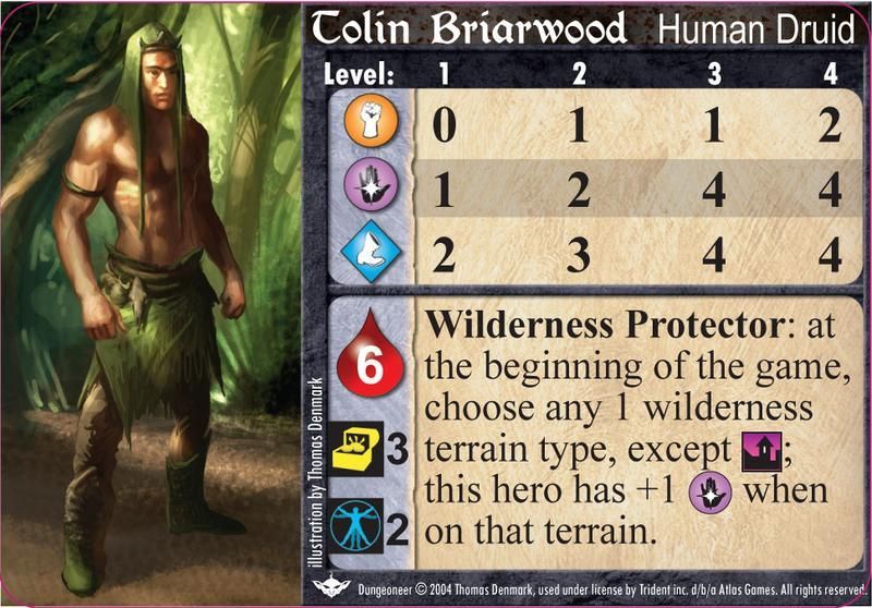 Не такой уж хлипкий чародей. Дешевая способность Тронгара очень полезна, особенно когда он нападает (или на него нападают) по несколько раз за ход. Не могу, правда, воспринимать всерьез его юбку. Нарядившийся так герой просто обязан получить право первого удара - его враги будут кататься от смеха.