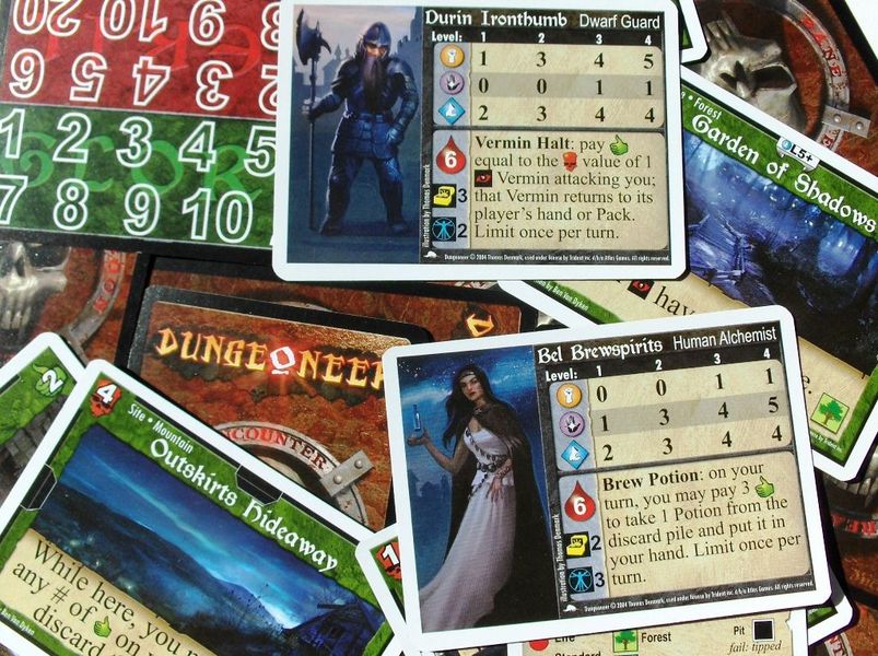 Забудьте как страшный сон "чтобы получить новый уровень, наберите X опыта..." В "Подземелье" все намного проще: выполнили задание - получили уровень. Также мне нравится возможность обозначать хп и уровень вашего героя положенным на карту кубиком - тоже просто и элегантно.
