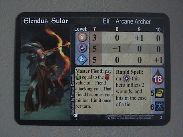 Да, да, знаю, что вы подумали. "Девро... чего-чего?" Это новый герой, с весьма приличной способностью. Мне очень нравится, как здорово его способности сочетаются; оружие дает ему +1 к магии, а за 3 славы он может добавить уже повышенный параметр к своему ближнему бою. Увы, в эпической колоде всего 1 (!) сокровище-оружие, так что вам должно сильно повезти.