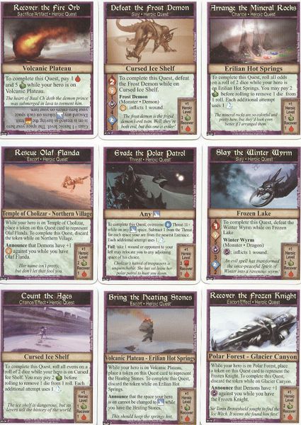 Как и остальные наборы серии, этот является самостоятельной игрой (герои сразу стартуют на 4 уровне). Но можно и объединить его с героической колодой: в таком случае герои стартуют с 1 уровня, прокачиваются до 4 на героических заданиях, а потом - до 7 на эпических заданиях. Любопытен метод состыковки героической карты с эпической. Смотрите сами: