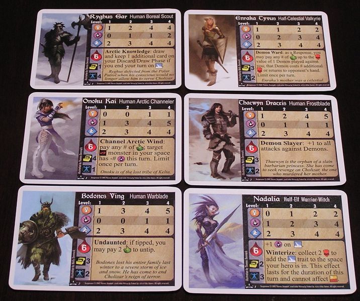Ригус Гар (человек-разведчик севера). Арктические знания: завершив ход в локации с оледенением, возьмите на руку дополнительную карту в фазе сброса/добора карт.