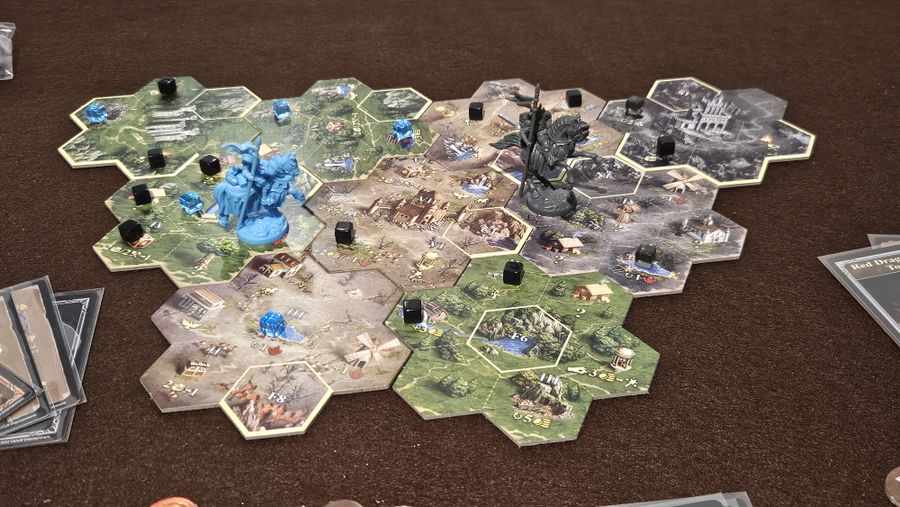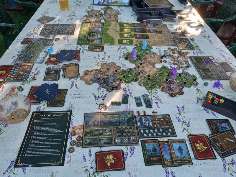 Я планирую пройти кампании и еще несколько раз сыграть с 2-3 игроками, но по первым впечатления это далеко не лучшая игра в своем жанре, если снять розовые очки ностальгии по Героям 3. Она прилично переносит на стол механики компьютерной игры, однако делает это ценой раздутых правил. Как и у многих кикстартеров, тут сразу вышло слишком много дополнений, а времени отполировать базовые механики и решить проблемы геймплея не осталось.