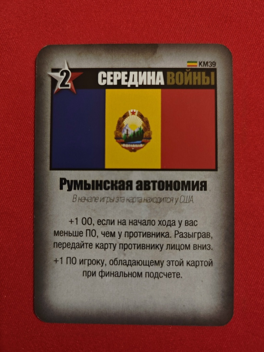 На каждой карте написано событие, а также количество очков операций. Карту можно разыграть двумя способами: как событие и как очки операций. События бывают трех типов: события СССР, события США и общие события. Если вы играете карту как событие, вы делаете все то, что написано на ней. Если же вы играете ее как ОО, то здесь уже зависит от того, чье это событие. Если это событие страны вашего оппонента, то вы обязаны сыграть и ОО и событие (порядок вы выбираете сами).