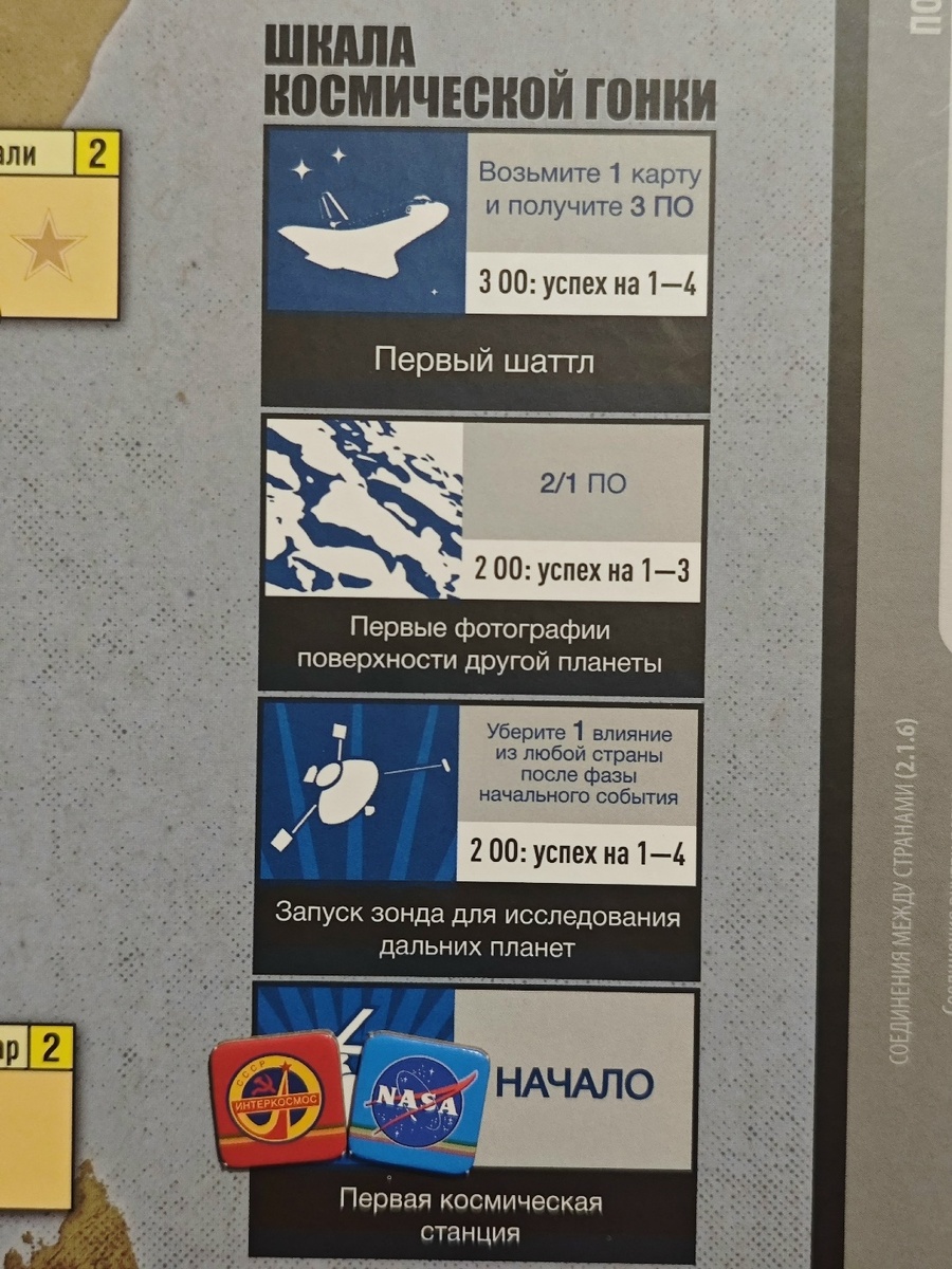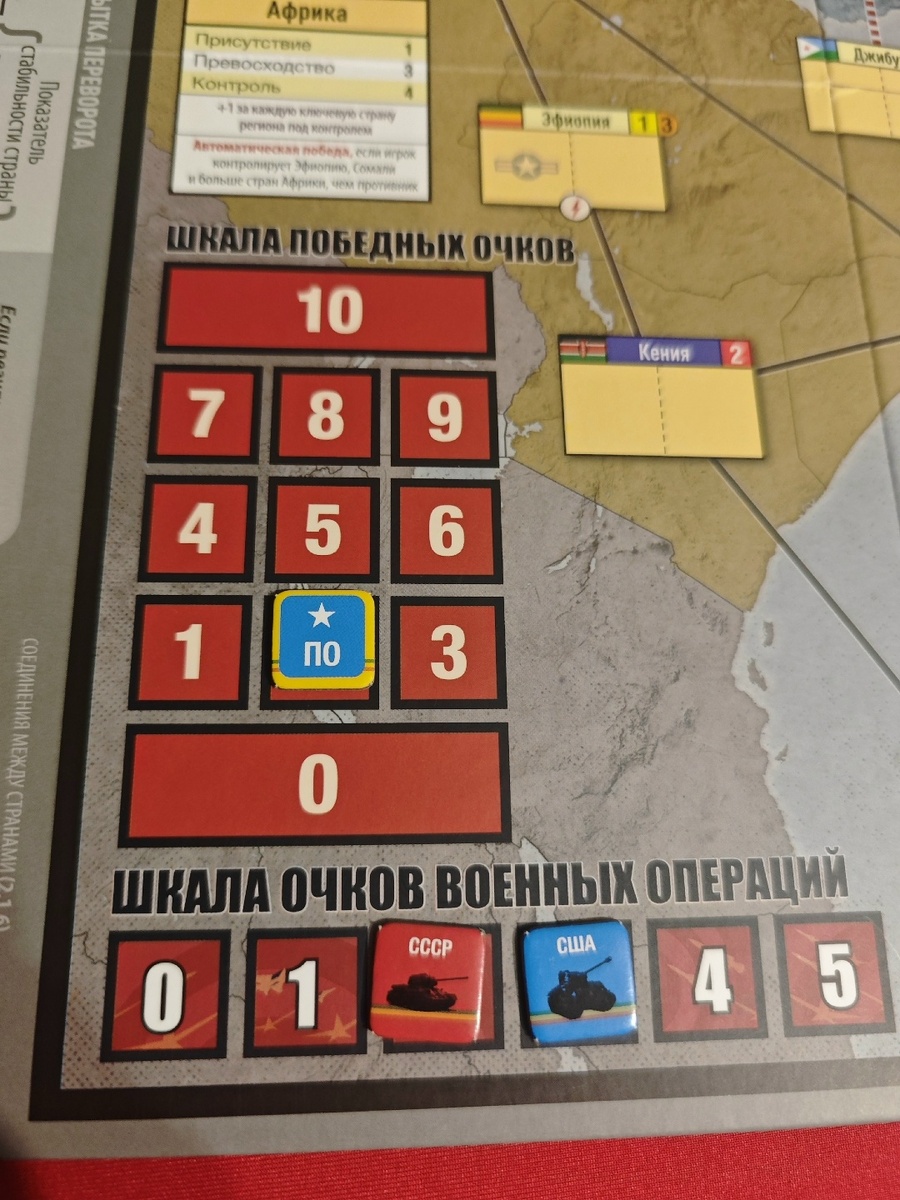 Также на поле есть шкала военных операций. За попытки переворотов игроки получают количество данных очков, равное количеству потраченных ОО.