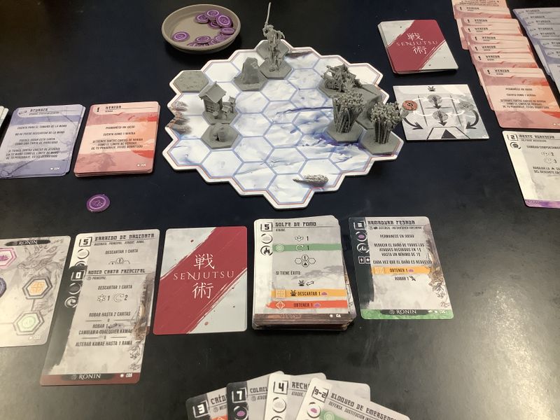 Каждый игрок, заимев колоду карт и миниатюру своего бойца, высаживается на поле, дабы доказать, что его катана стоит лучше, да и вообще он куда самураистее чем оппонент.