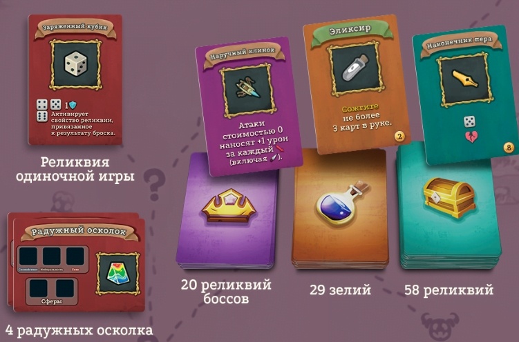 Часть реликвий так же подверглись влиянию кубика, они срабатывают исключительно от броска кубика и выпадения конкретного значения, а кубик дело такое... Может часто выпадать, а может никогда. В любом случае, стопка с реликвиями большая и там хватает реликвий которые не завязаны на броске куба.