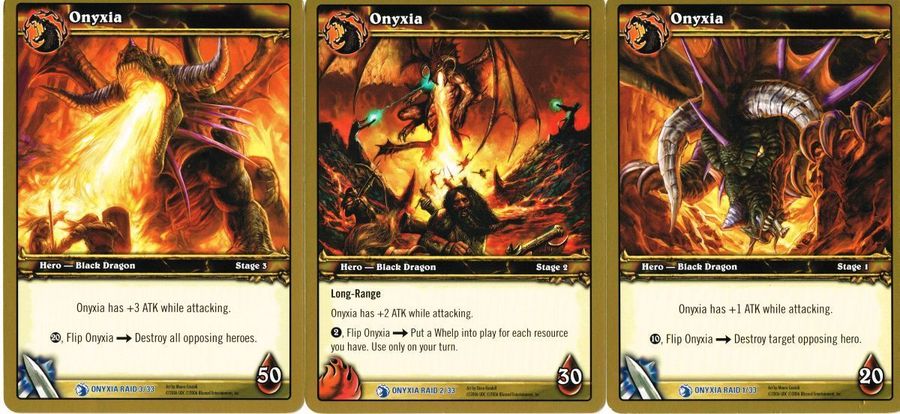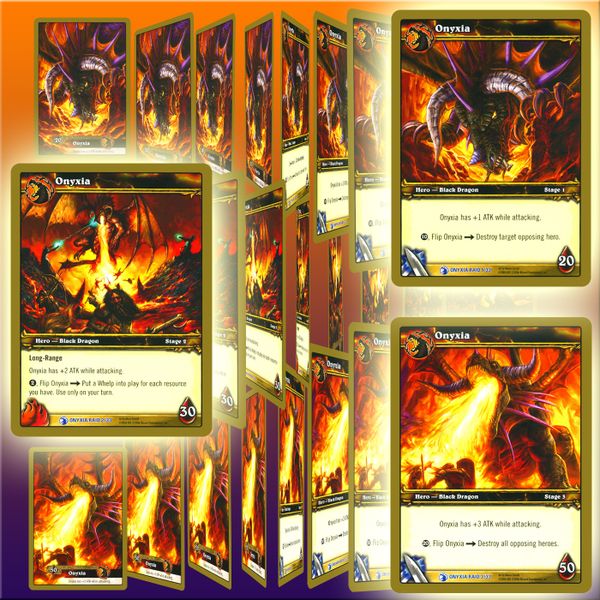 Ониксия представлена тремя oversize-картами, которые символизируют различные стадии её ярости. У разных карт разные возможности, и когда наносится указанное число повреждений, одна карта сменяет другую. Размер руки игрока-рейдмастера ограничен не семью, а десятью картами. В начале своего хода он тянет не одну карту, а число карт по номеру текущей стадии. И ещё есть колода событий. Завершив фазу взятия (draw phase), рейдмастер открывает из неё верхнюю карту, зачитывает вслух и все игроки выполняют указанные действия. После чего карта кладётся лицом вниз как ресурс. Вот и все модификации правил.