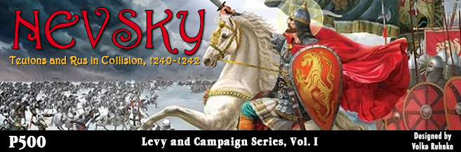 На сайте GMT Games появилась информация о том, что известный автор популярных варгеймов Волько Ранке (Wilderness War, Labirinth, COIN Series) обратил свой взор на эпоху феодализма и запускает новую серию игр Levy & Campaign Series, первой игрой в которой станет Nevsky, описывающая военно-политическое противостояние между русскими и тевтонцами. В рамках компании Р500 открыт предзаказ. Более полная информация на страничке игры https://www.gmtgames.com/p-696-nevsky-teutons-and-rus-in-collision-1240-1242.aspx