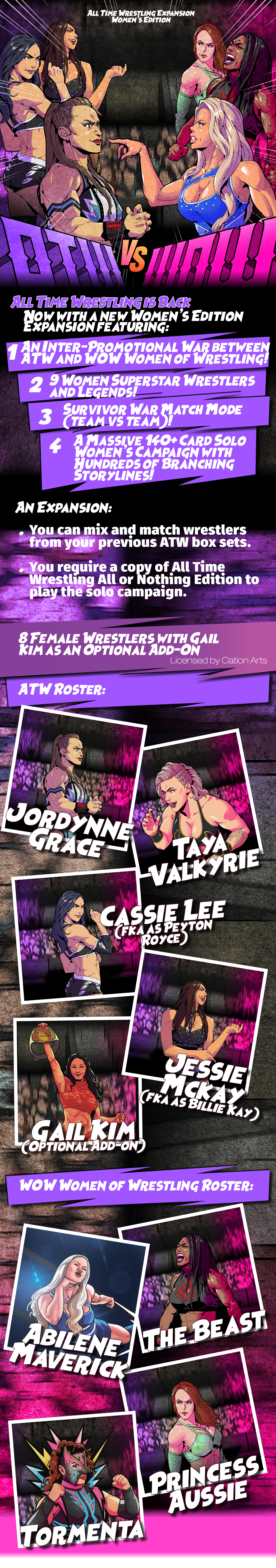 Открыт late pledge на дополнение к игре All Time Wrestling - Women's Edition. Также доступны и базовые наборы.