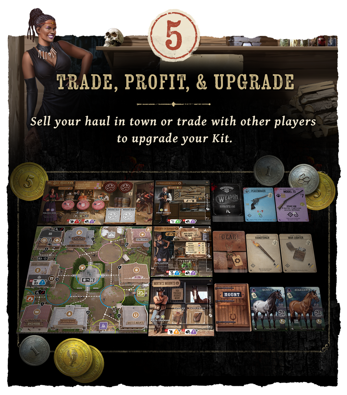 В центре Бантама находится город изгоев Галлоу-Спрингс, где сходятся водно-болотные земли, равнины, пустошь и горы. Это земля, где в каждой тени подстерегают безжалостные опасности, но перспектива славы и богатства сияет не менее ярко. Вам предстоит добывать ресурсы для создания мощных предметов, приобретать смертоносное оружие и снаряжение, развивать навыки и способности своего персонажа, преодолевать опасные местности, строить укрытия и набирать отряд, чтобы утвердить свое влияние в округе. А также не забывать следить за происходящими в городе и в глуши событиями, которые могут принести богатство — или разорение. В конце концов только один может стать самым известным!