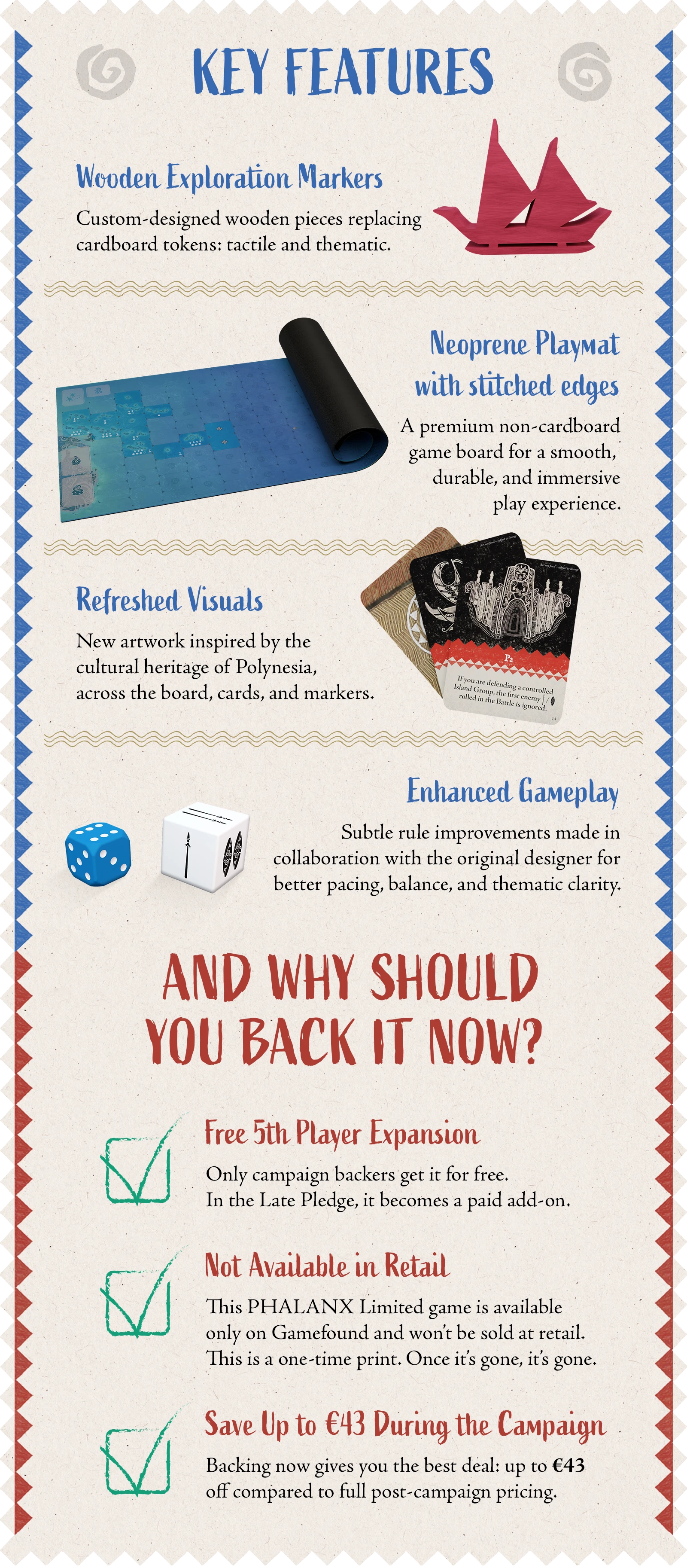 Прокладывайте новые маршруты. Открывайте цепочки богатых островов. Стройте каноэ, обучайте воинов и соединяйте свою зарождающуюся империю через тысячи миль открытого моря.
