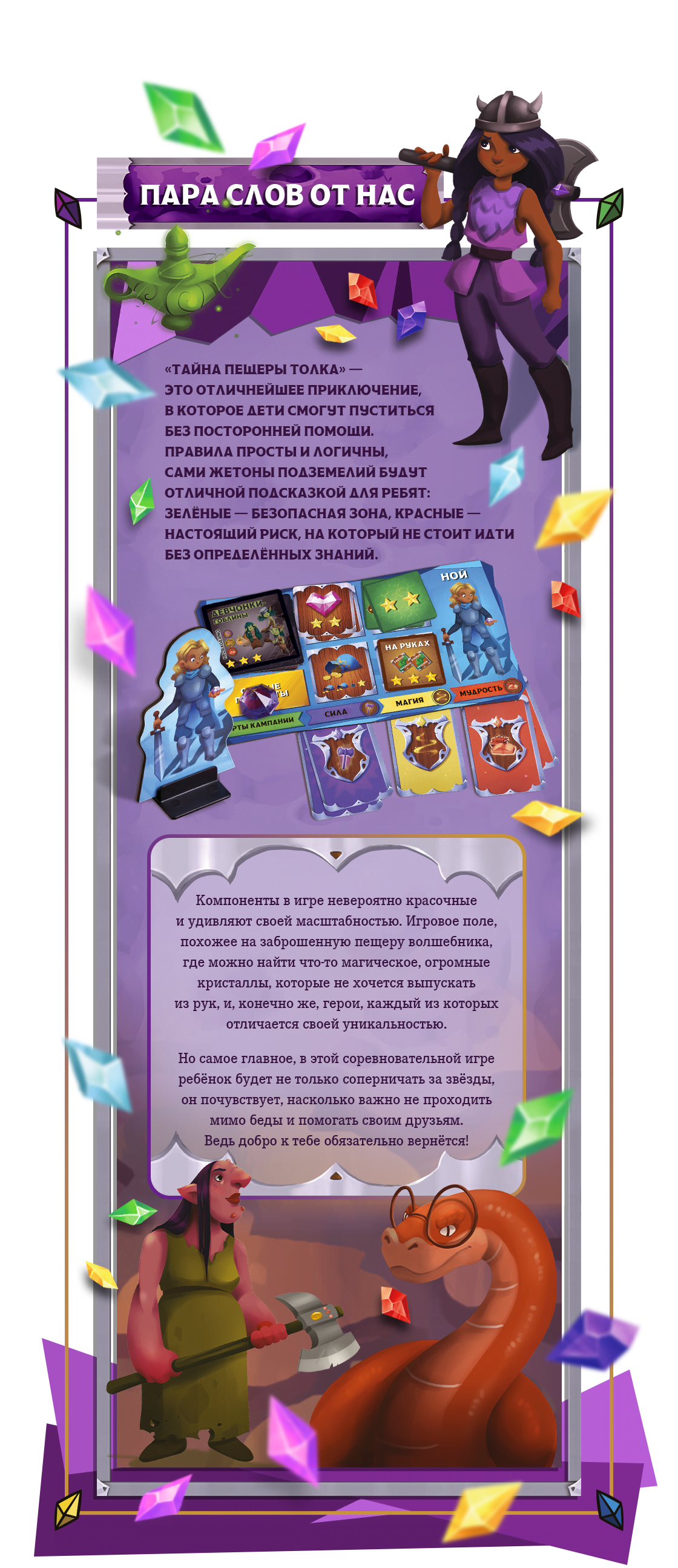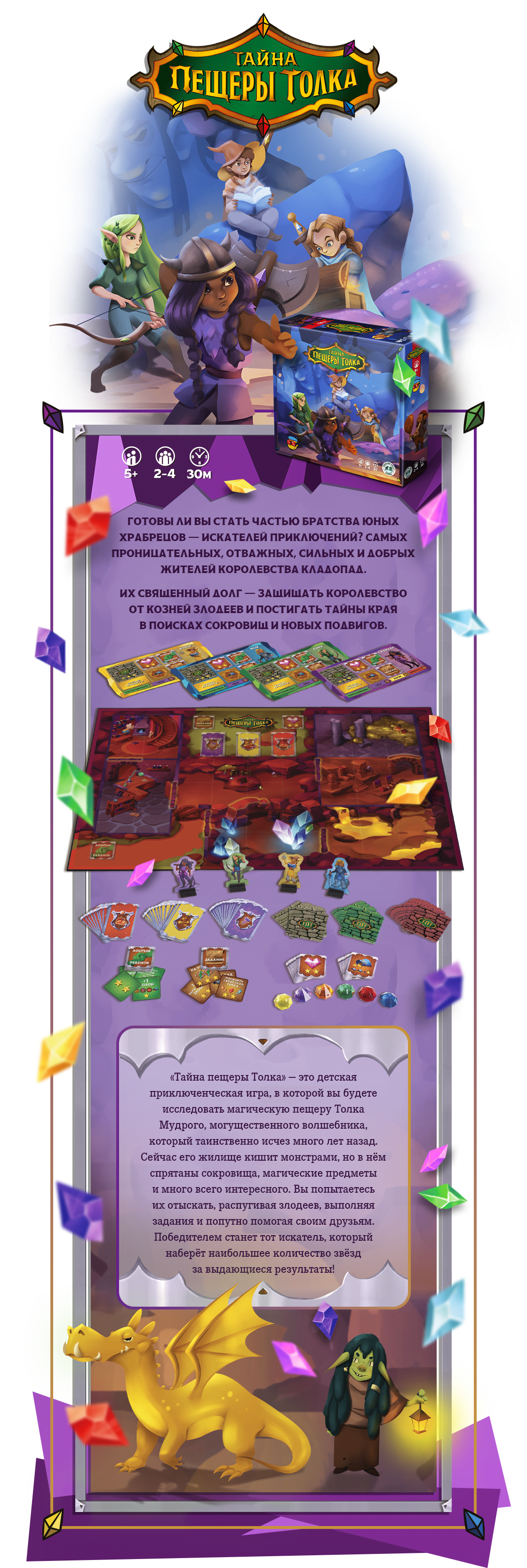 «Тайна пещеры Толка» – это отличное начало настольного пути. Добро пожаловать, рады каждому юному любителю приключений!