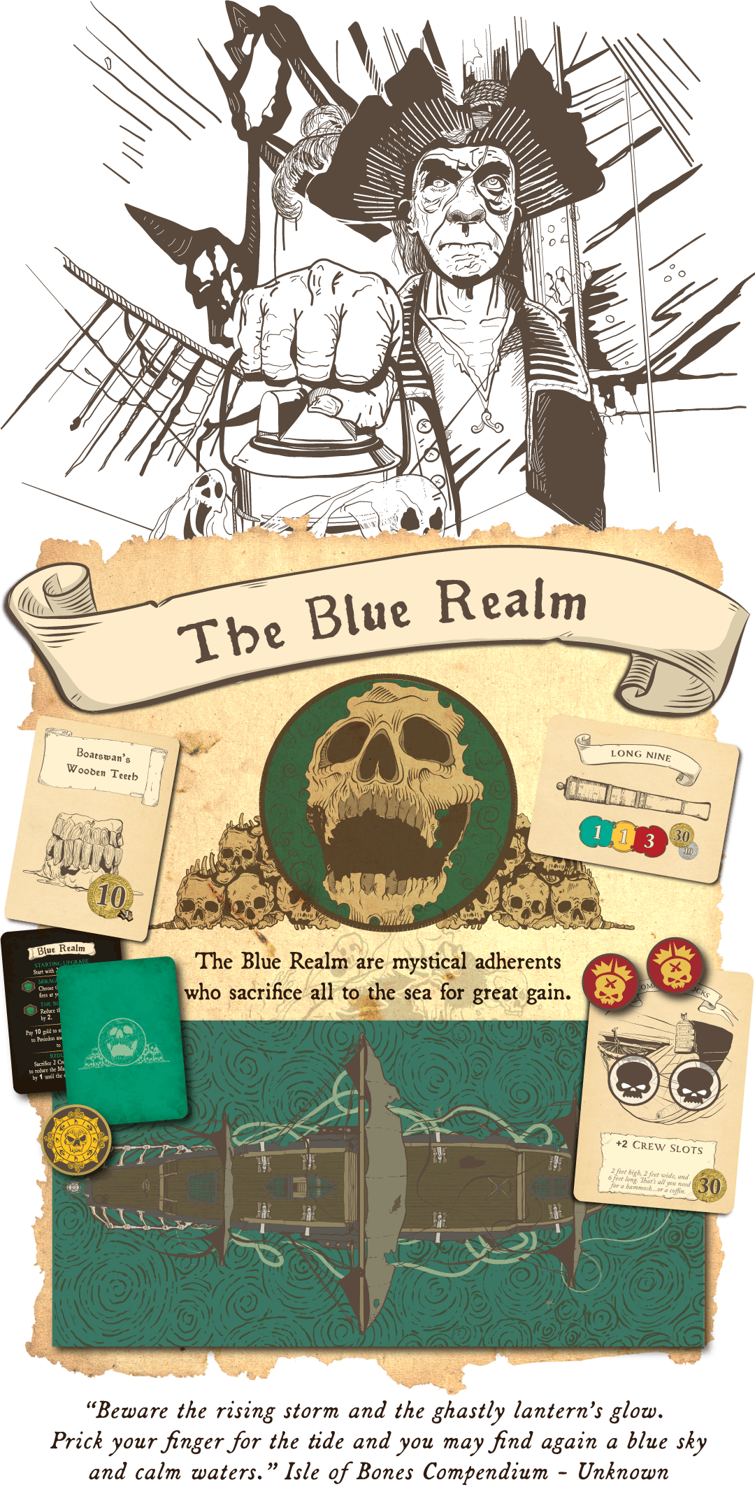 Вы и ваши товарищи-пиратские капитаны стартуете с маленькими суденышками, базовыми пушками и слабенькой командой. На протяжении 10 раундов вы будете охотиться на купеческие корабли, собирать награбленные сокровища, улучшать свое судно, и сталкиваться с все более могучими врагами - включая устращающихся Пиратских Лордов. Ваша конечная цель - свергнуть тиранического Короля Пиратов Джона Дейвиса и утопить его монструозный флагман "Мертвый скиталец".