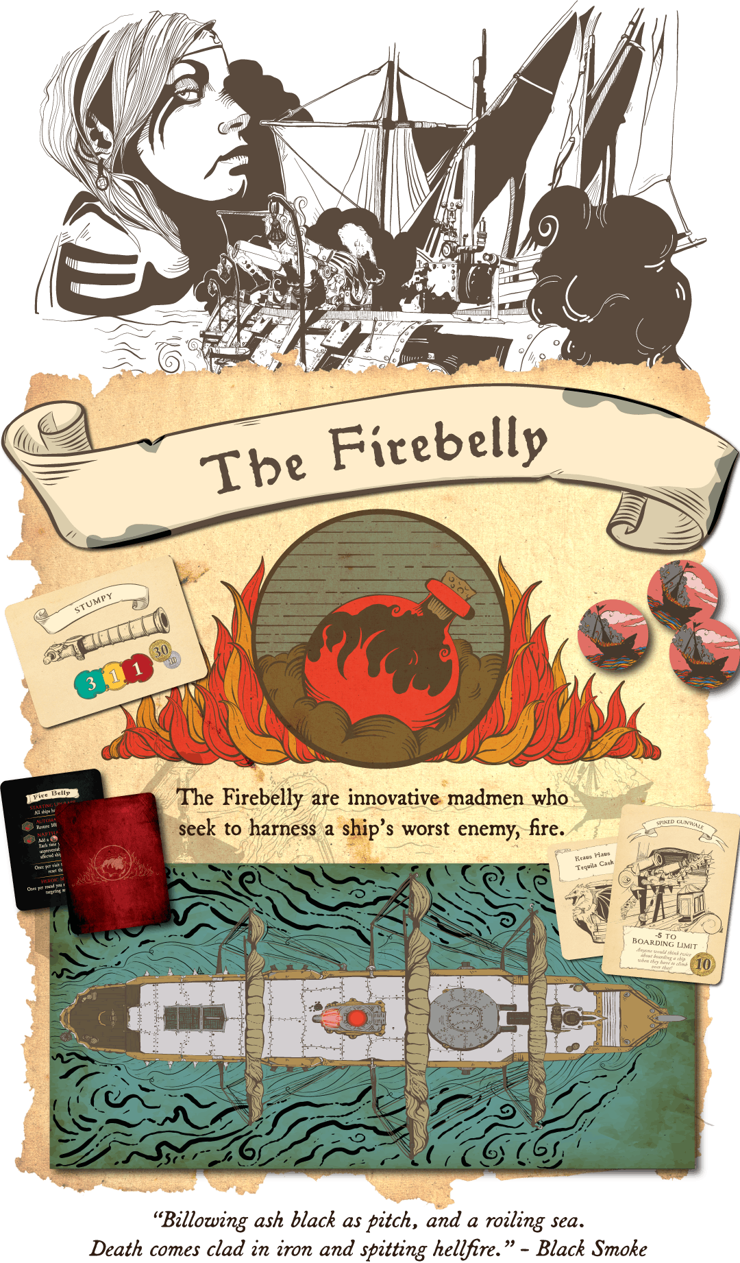 В боях вас ждут тактические маневры и кубиковые обстрелы из орудий на разных дистанциях (длинной, средней и ближней), абордажи и захват вражеских кораблей. Грабежи обеспечат вас новыми пушками, золотам и апгрейдами, а уникальные для каждой фракции способности и кубик судьбы добавят стратегический элемент.