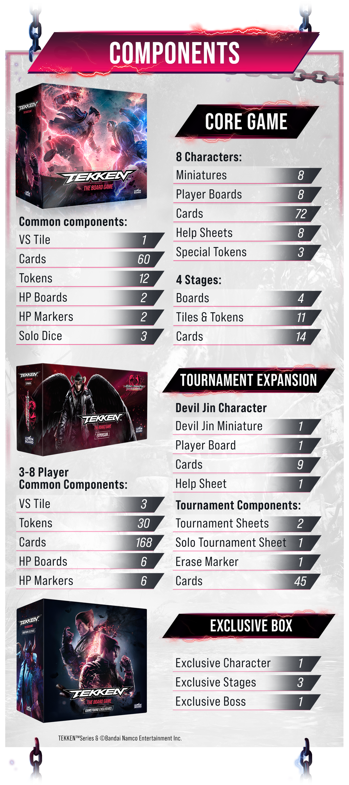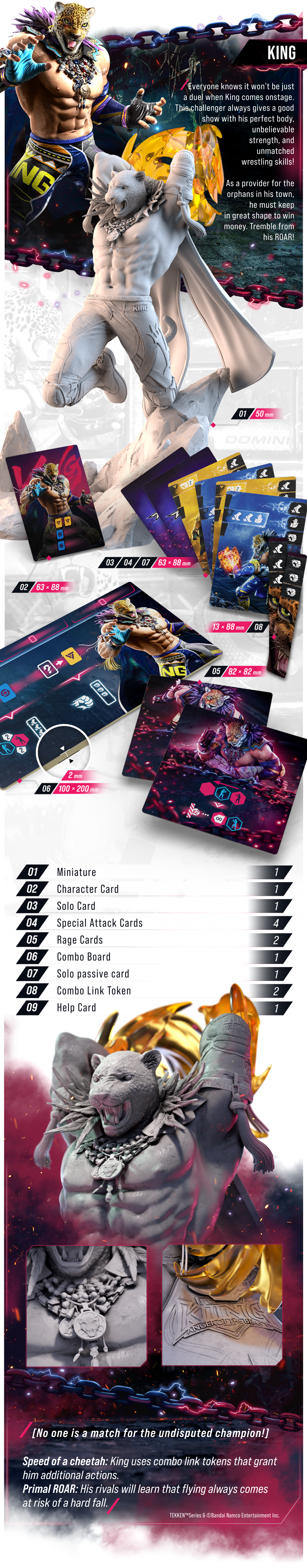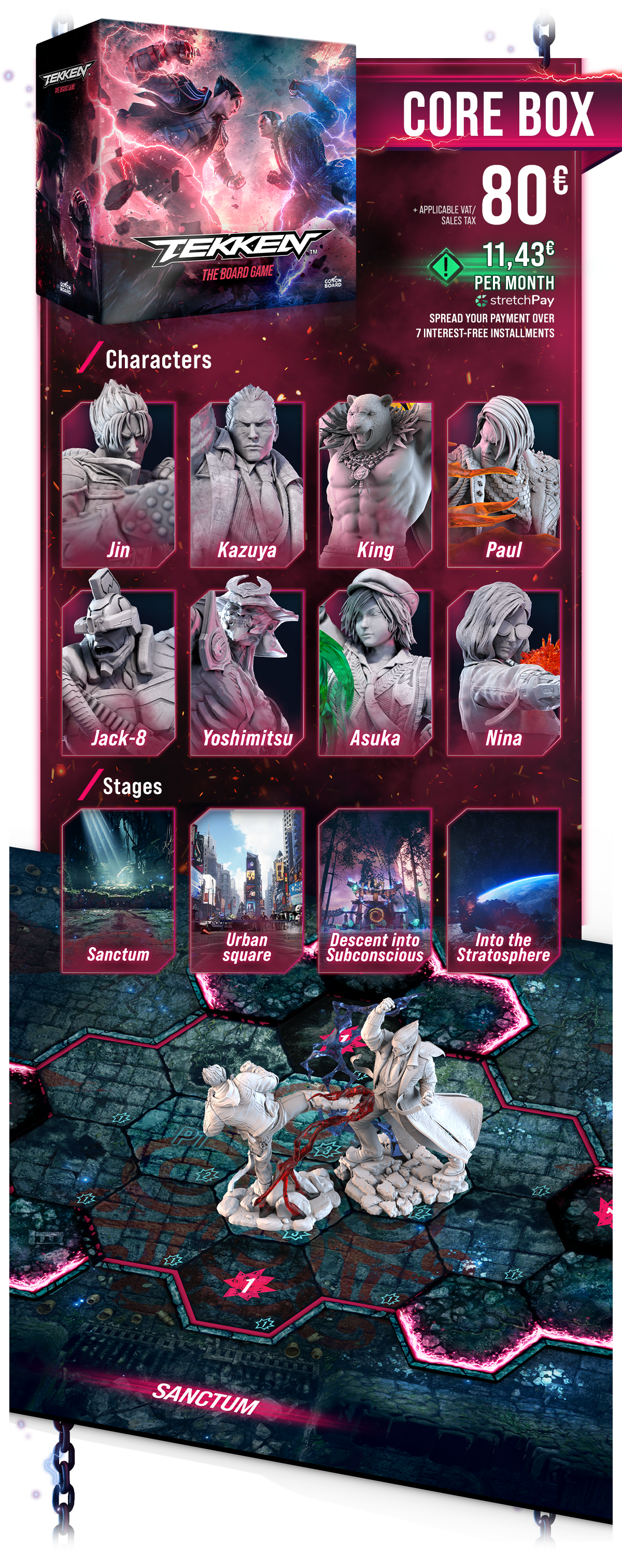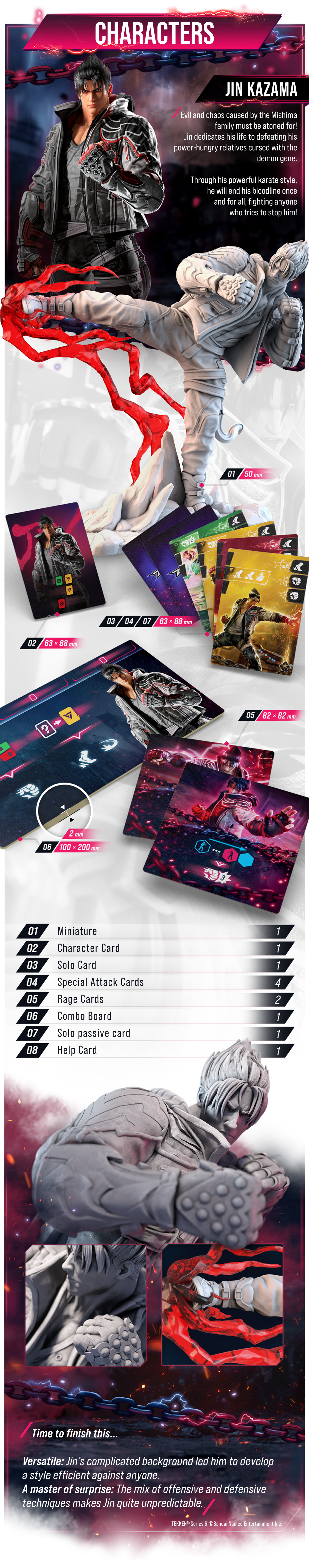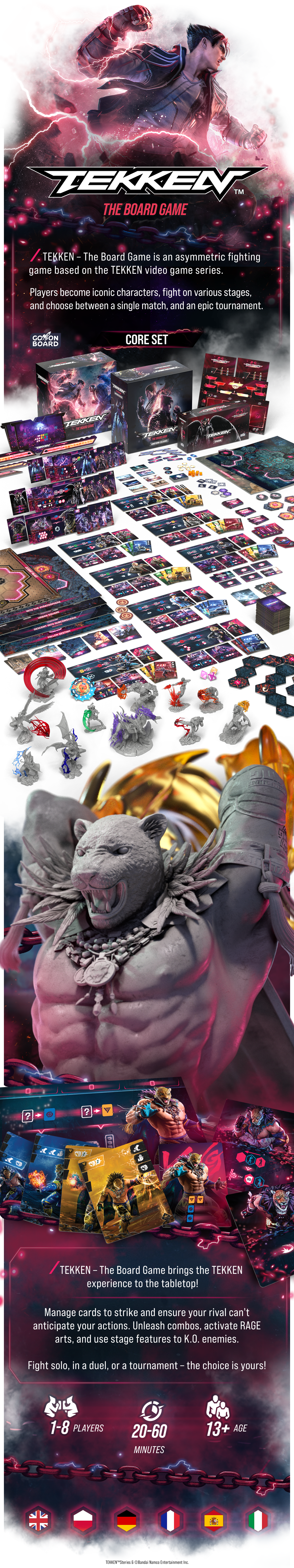 Сражайтесь в роли одного из культовых персонажей в динамичной тактической игре-файтинге, которая переносит на стол динамику и тактику видеоигр серии TEKKEN.
