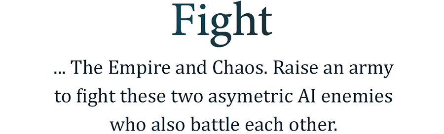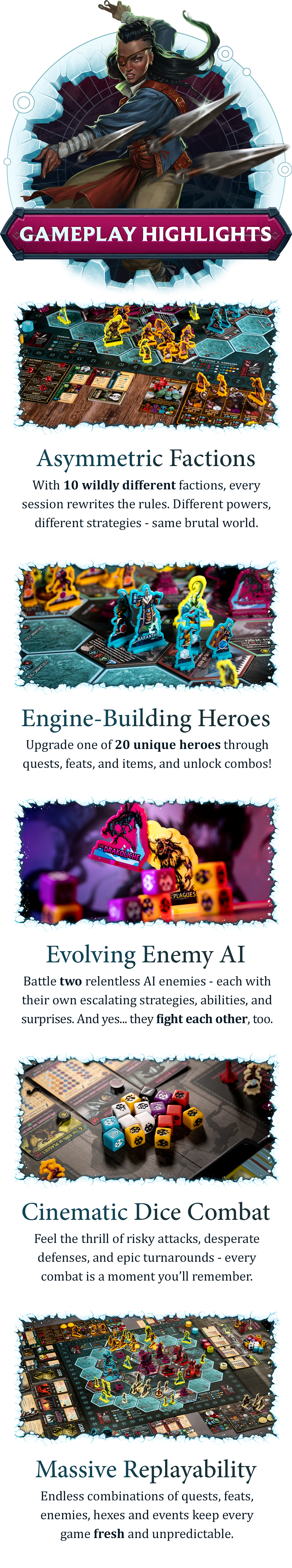 Каждая партия рассказывает новую историю из-за модульного игрового поля (ландшафт открывается постепенно и трудно предсказать, что вы ещё наёдёте), асимметричных фракций и огромного разнообразия событий. Партия заканчивается после четырех глав. Если вы не набрали больше победных очков, чем Хаос и Империя, то мир действительно может закончится...