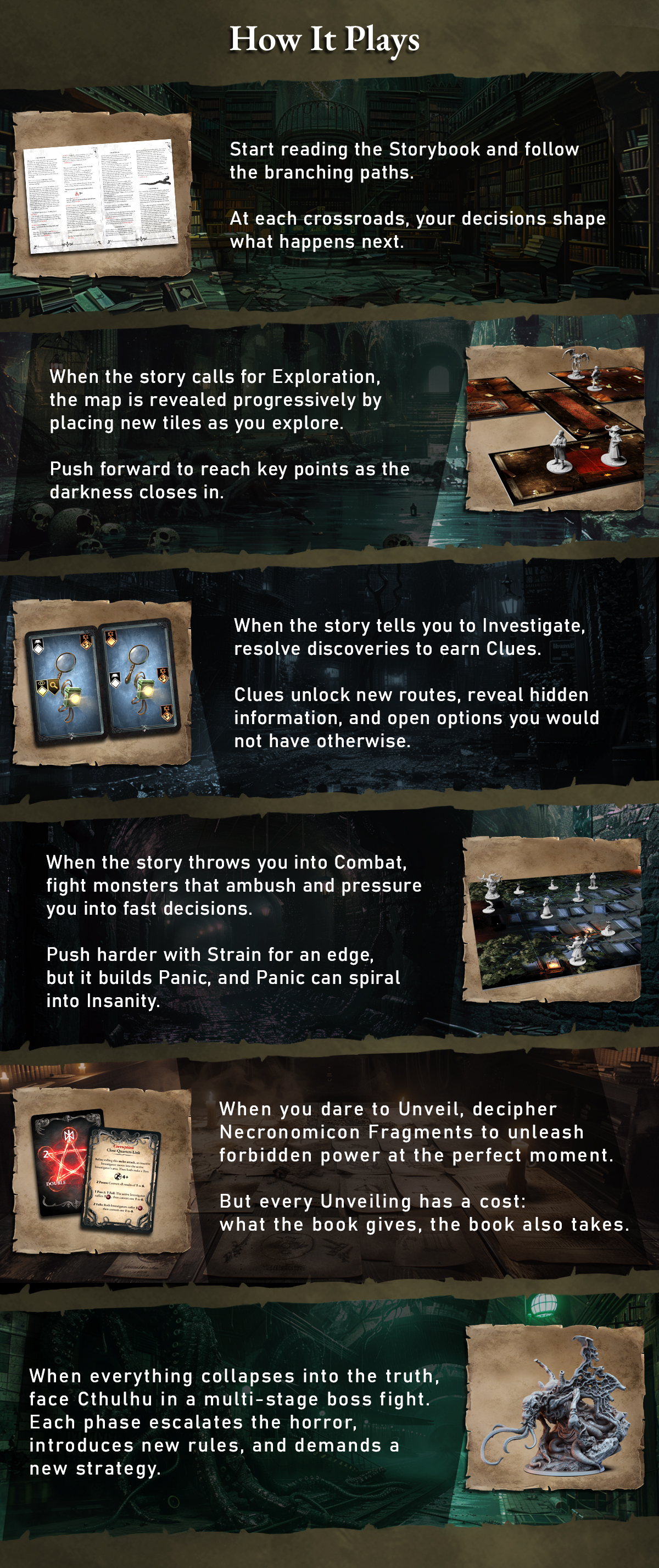 Void Unveiled: Echoes of Arkham - полная расследований, безумия и космического ужаса кооперативная повествовательная игра по мотивам произведений Говарда Лавкрафта, где каждый монстр играет по своим правилам, а знания могут стать вашим единственным оружием или вашей погибелью.