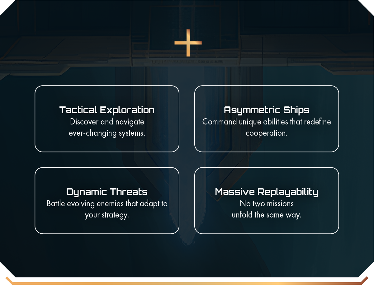 Исследуйте модульную галактику, открывайте новые звездные системы и находите мощные сигналы, оставленные забытой цивилизацией. Сражайтесь с агрессивными адаптирующимися врагами. Занимайтесь менеджментом времени и угроз и кооперируйтесь, чтобы выжить. Каждый корабль имеет свою роль: кто-то разведчик, кто-то боец, кто-то ремонтник других кораблей - и все они необходимы вашему космическому флоту. Вам предстоит открывать сюрпризы, распоряжаться ресурсами и реагировать на неожиданные проблемы, а также бороться с врагом, который неустанно наступает. Запечатайте вовремя разлом, чтобы предотвратить бесконтрольное расползание Порчи.