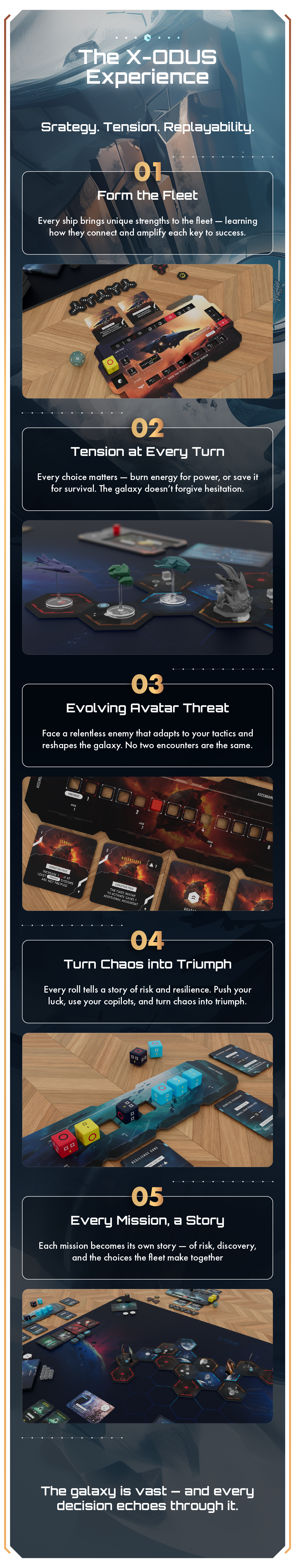 X-ODUS: Rise of the Corruption - Second Edition - кооперативная игра, сочетающая тактическую разведку, асимметричные способности кораблей, динамично меняющиеся угрозы и увлекательные реиграбельные партии.