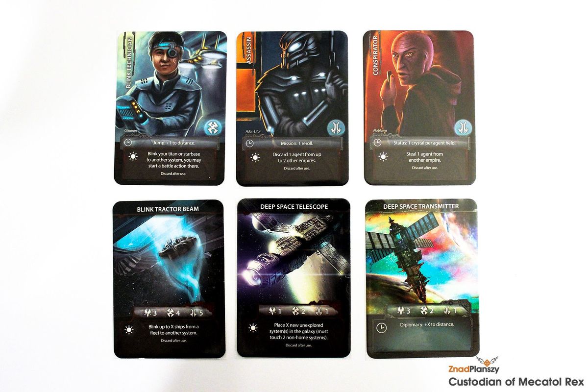 С подготовкой всё просто: берутся ресурсы (кристаллы), определяемые счётчиком (что довольно удобно), обновляются карточки агентов, артефактов, галактического рынка. Зачем-то полагается перемешивать колоду действий (из 4-х карт!), но мы этого не делали.