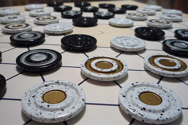 Завершила нашу коллекцию игр Гипф проекта (Project GIPF) коробочка с Инш (Yinsh). И если в Цаар (Tzaar) есть намёк на русское происхождение идеи, то Инш (Yinsh) несёт в себе отголоски китайской философии о единстве Инь и Ян.