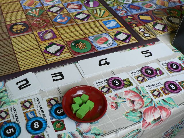 За каждый собранный рецепт положено вознаграждение в виде призовых жетонов с победными очками. А если рецепт собран в правильной последовательности, то игрок получит ещё и васаби.