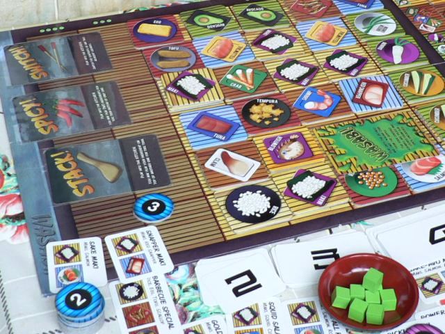 Васаби (Wasabi!) была номинанткой сразу нескольких категорий. Но всё же мы решили, что лучше всего она подходит для строчки № 9 "Игра, связанная с едой". Там были ещё Халли-Галли, Дарджилинг, Шоколадный набор, 100 000 лет до нашей эры, Делиссимо, Фрукто 10, Повелитель закусочных, но они не выдержали конкуренции.
