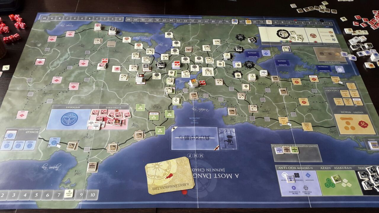 Впечатления от игры двойственные. Она безусловно, стоящая, сделана оригинально, с любовью к истории Японии того времени. Но в саму игру надо погружаться, привыкать к ней. Мне это было сделать тяжело, никак не мог войти в её рваный ритм: коварный маркер конца хода не позволяет планировать свои действия надолго. Рассчитываешь ты двигаться одним из кланов, а он в течение трёх ходов ни разу не активируется, так что уже и забываешь, что же ты хотел им сделать. Есть и другие тонкие моменты - условия выбывания кланов из игры, подкупа отрядов, проверки на изоляцию. Вообще, сама книга правил читается с трудом, информация об одном элементе игры может быть раскидана по разным параграфам, важные части правил идут сплошным текстом со второстепенными вещами, иногда путаются названия (лидеры называются генералами) и т.д. Да и от самого языка, которым написаны правила остаётся впечатление, что с японского на английский их переводил француз. Но к счастью на BGG есть дополнительные материалы для игры (подробная последовательность хода, эрраты и т.п.), которые исправляют положение. Не забывайте ими пользоваться, они значительно облегчают освоение игры.