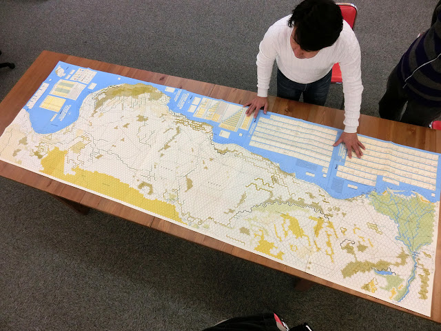 Это игра для 10 игроков (в каждой из двух команд есть главнокомандующий, начальник снабжения, начальник ближайшего тыла, командующий авиацией и командующий фронтовыми частями). Полное время кампании 1200 часов (150 рабочих дней). Оцените её размер в разложенном виде (3 метра 5 сантиметров):
