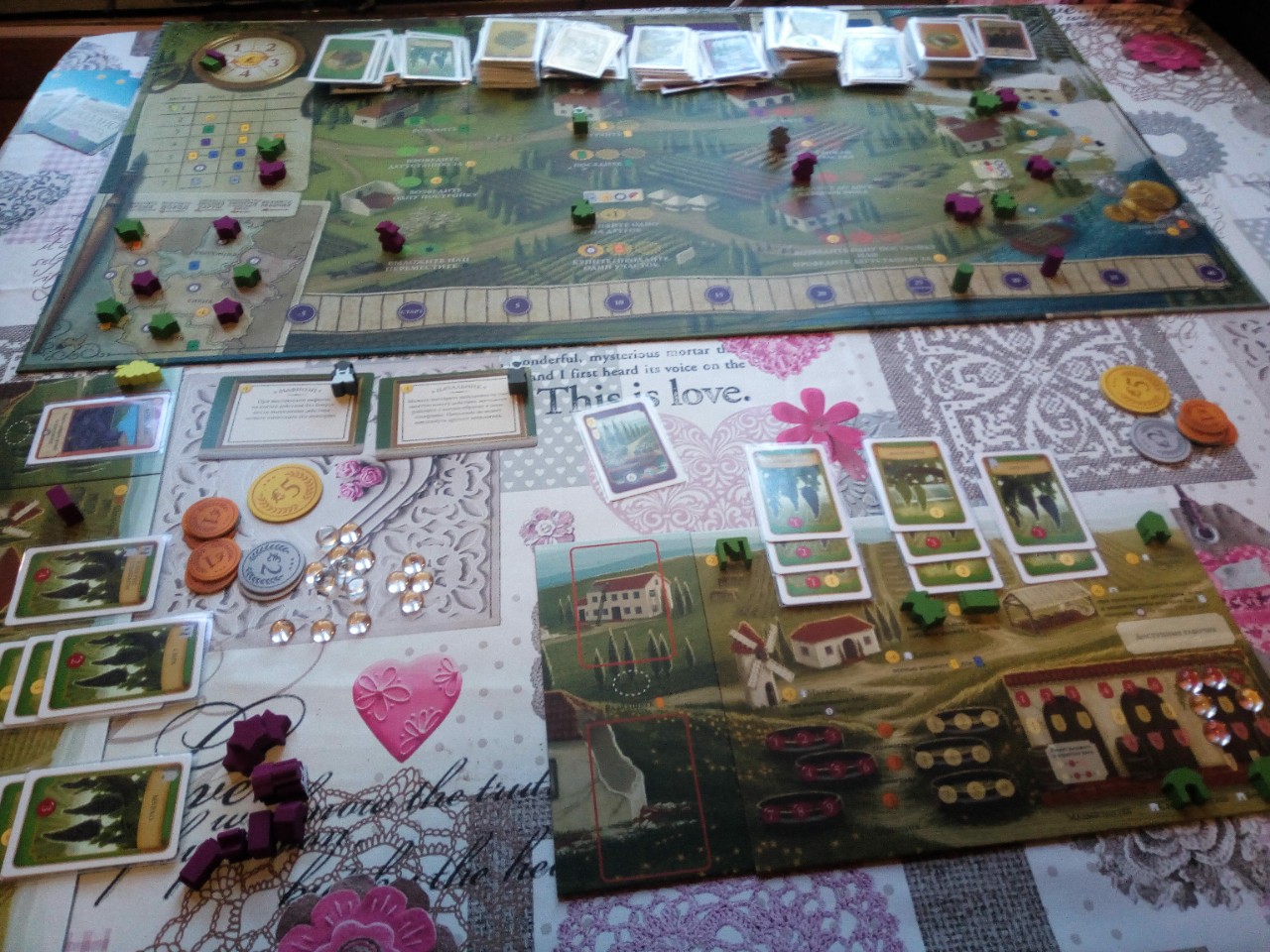 Что в итоге? Игра очень добротная семейка, интересная и расслабляющая, в коллекции нашла своё почётное место и между хардкорными евроиграми будем её раскладывать за атмосферу и некий релакс, ну а минусы можно в конце концов будет исправить хоумрулами, благо на том же БГГ об этом написана не одна статья. И да, нужно добавить вырезанные дополнения про сыр, коров, яблоки и мораль т.к. версия то не такая уж и полная :)