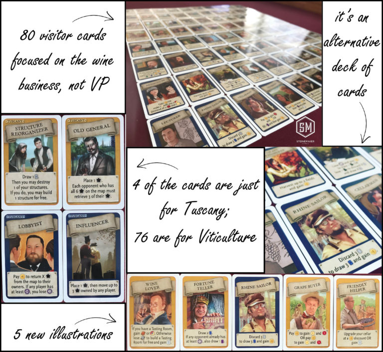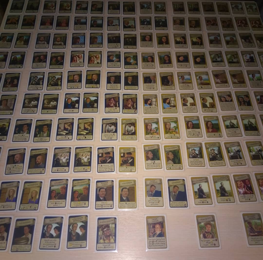 А ведь есть дополнение от этого года Visit from the Rhine Valley, которое как раз и исправляет все эти ньюансы и оно не вошло в русское полное издание. Это набор из 80 карт посетителей, которые полностью заменяют оригинальные и у этих упор сделан на винный бизнес, а не на получение победных очков из воздуха! Вот оно - то что доктор прописал!