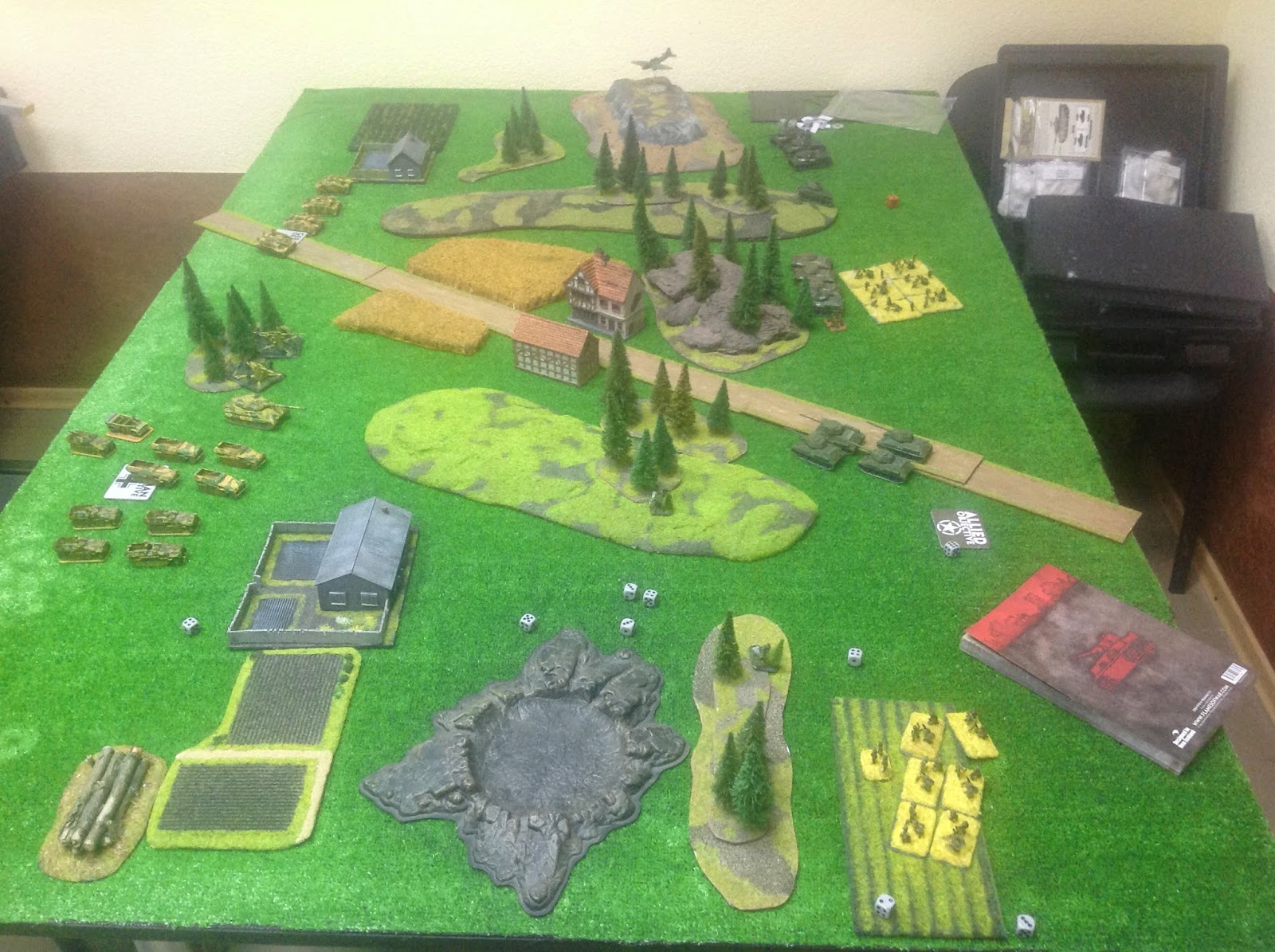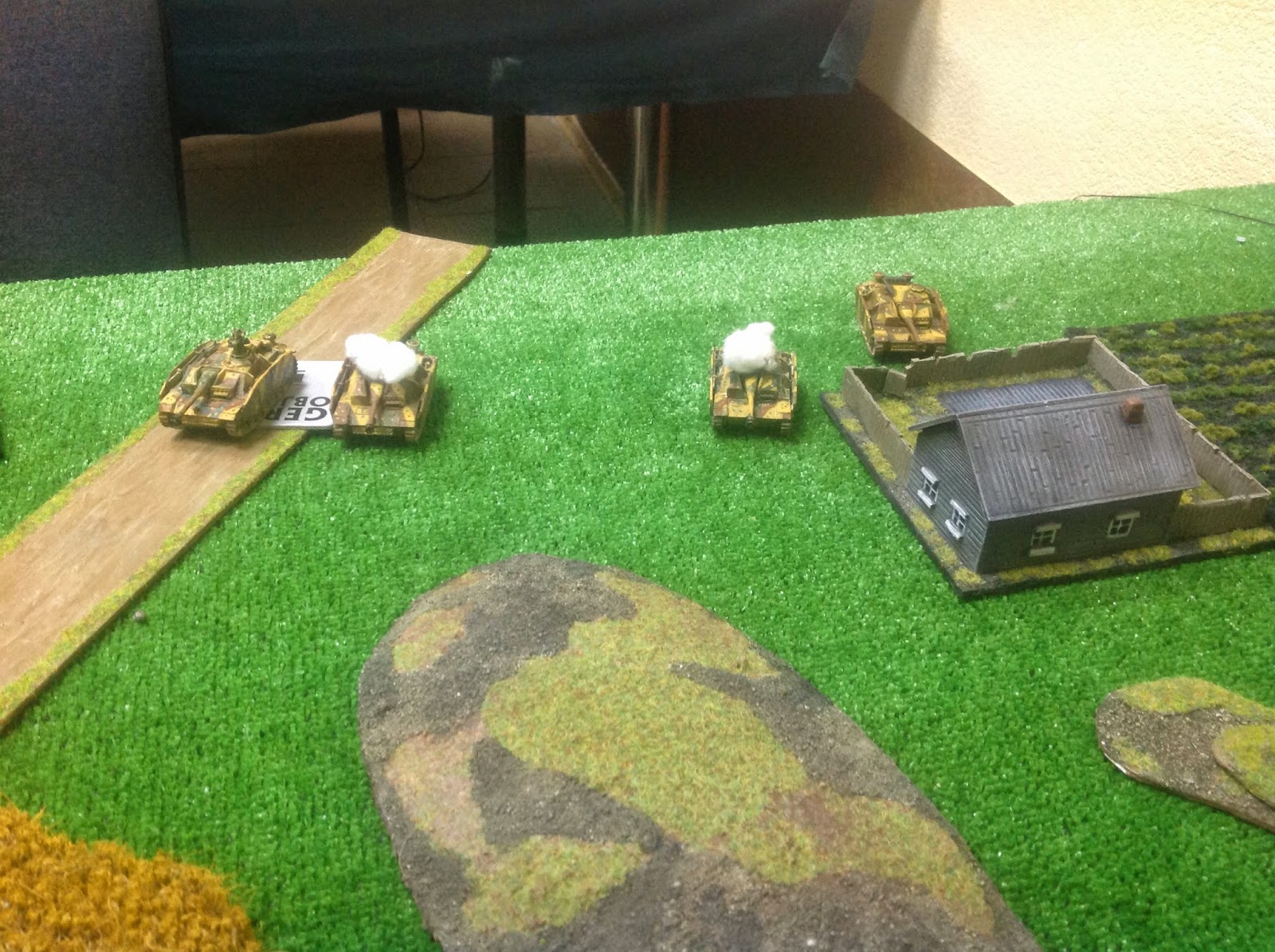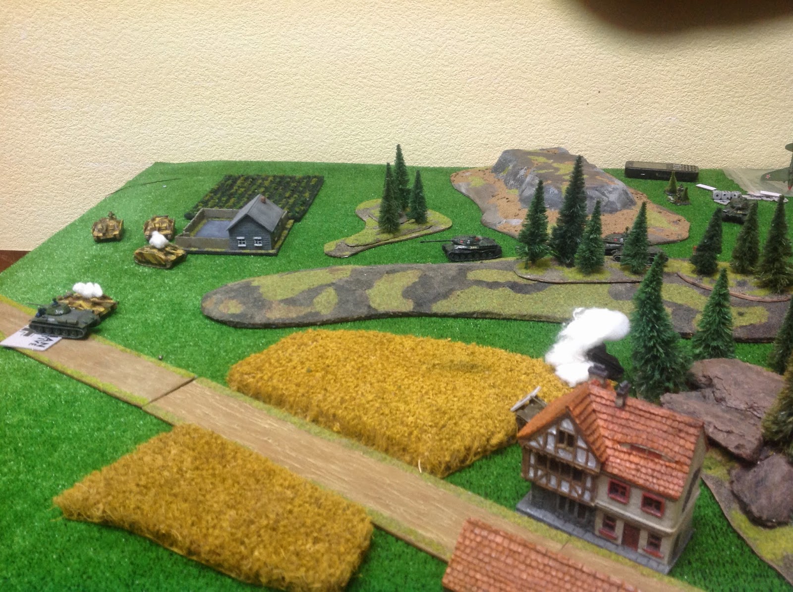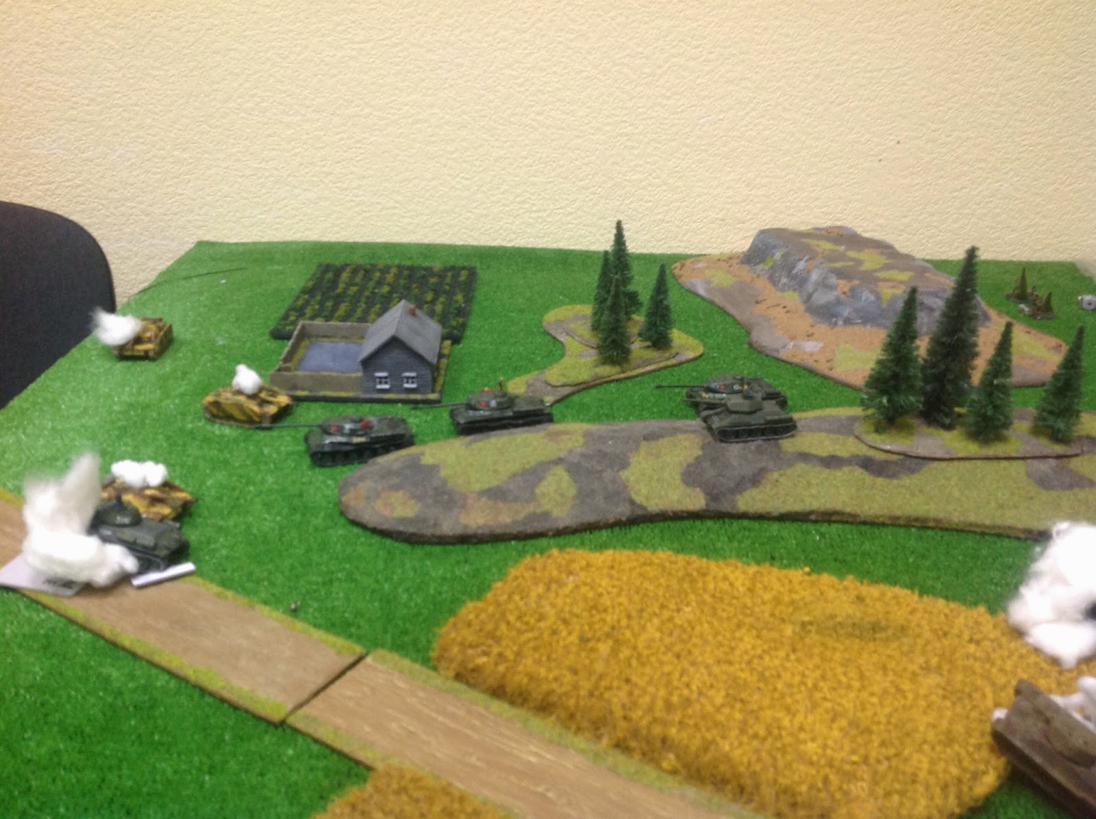 Во вторых одна из Т-34 наступавших по центру поля боя, застряла (в ход немецкого игрока она будет расстреляна из его 88мм орудий).