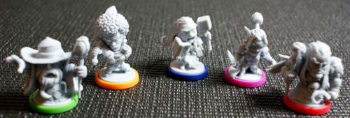 Каждый игрок выбирает себе по герою, получает его карту и карточки дополнительных способностей. Но сразу использовать их нельзя, так что они кладутся под карту героя. Миниатюры героев вставляются в цветные подставки, благодаря чему их легче отличить друг от друга. Также будущие соперники получают один жетон дополнительного движения, ставят маркер жизней героя на максимальное число (6) и тянут по 2 случайных карты сокровищ. Все участники стартуют в первом, единственном раскрытом помещении, с нулевым опытом (который тоже отсчитывается цветными маркерами). Прочие жетоны и карточки раскладываются неподалеку от тайлов подземелья.