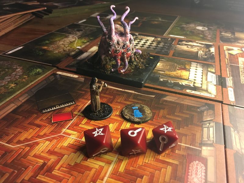 Новая партия прошла по сценарию из дополнения «За порогом» — «Врата поместья Сильвервуд» (вроде так называется). Основная фишка сценария — в том, что особняк живёт своей жизнью, и комнаты в нём могут перемещаться, исчезать и появляться снова.