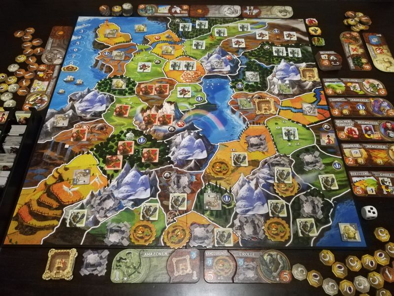 Сейчас: наигрываем в среднем 5-6 партий в год. Игру очень удобно брать с собой в поездку (колода карт, никаких планшетов-фишек-жетонов). Дети учатся принимать решения, на ходу менять стратегию, следить за чужими выложенными картами (табло). "Сказка" делит наш стол с "7 чудесами". Я предпочитаю "Сказку", семья - "7 чудес".