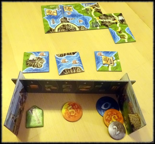 В «Каркассон» играю с удовольствием, а тут - «каркассон продвинутого настольщика» (с аукционами и целями). Кстати, невыкупленные соперниками на аукционе карты приходиться выкупать самому, поэтому цену надо назначать вдумчиво. Описание и обзоры меня заинтересовали. Начал играть: по сравнению с «Каркассоном» сильно «провисает» темп игры, поскольку для принятия решения игроку надо анализировать сильно больше. В моей игровой ячейке (моя семья) у этой настолки перспективы не радужные. Игра в целом понравилась, установил на телефон и наиграл несколько десятков партий за пару месяцев в общественном транспорте, потом удалил. Если кто-то предложит сыграть — сыграю: игра крепкая, интересная.