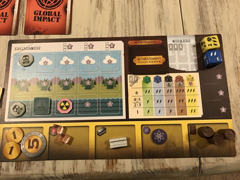 Уже не помню где услышал про эту настолку, но очень понравилось как игра просвещает игроков на тему взаимосвязи выработки электроэнергии с загрязнением окружающей среды. Круто сделаны кубики-электростанции разного цвета (чёрные - угольные ТЭС, синие - ГЭС, жёлтые - АЭС) - результат броска определяет сколько энергии получает игрок (она потребуется ему (наряду с рабочими) для оплаты выбранных действий в следующем раунде). Множество разных карт-зданий, которые можно строить для получения бонусов. Тесное взаимодействие между игроками - можно занимать нужные действия или вынуждать соперников больше платить за эти действия. Элементов много, но моя семья уже во второй партии действовала быстро и без даунтайма.