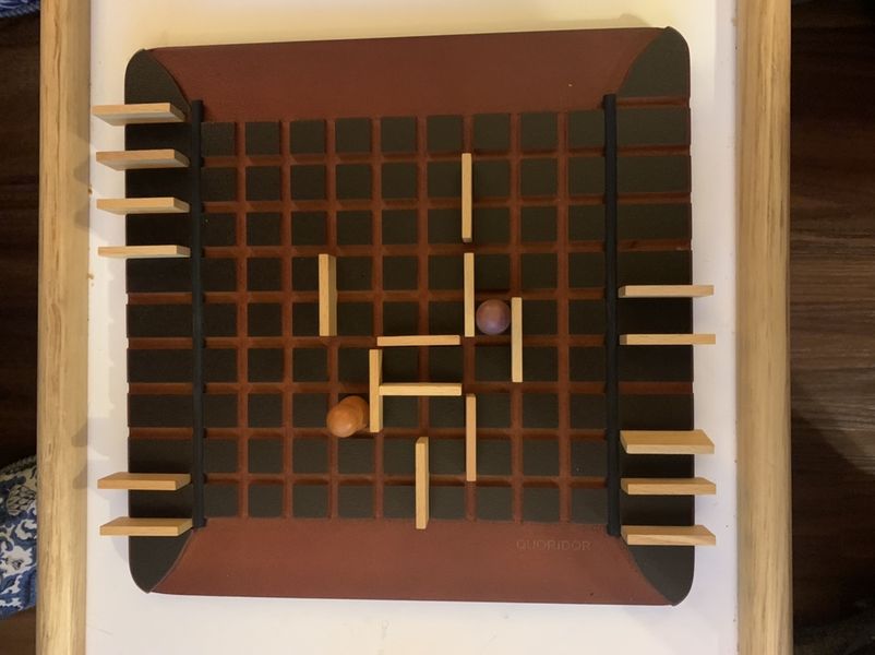 Абстракт, в котором надо провести свою фишку от первой линии до последней и при этом не дать сопернику провести его фишку, выставляя заборы. Кстати, у соперника тоже есть заборы, так что не всё так однозначно. Наткнулся на электронную версию - очень понравилась: простая, но мозголомная.