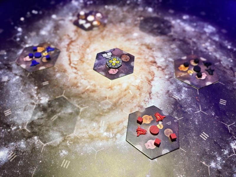 Тёплая ламповая "Терра Мистика" до сих пор остаётся одной из моих любимых игр, поэтому не мог пройти мимо предложения на БГГ стать тестером её реинкарнации. Отправил заявку, получил упрощённые материалы для изготовления ПНП, сделал. Фишки и ресурсы взял из "Терры". Разложил сам с собой - круто, но играть со мной в это никто не будет (если в "ТМ" мои не очень любят играть: "слишком много элементов", то тут - туши свет). Изменения понравились - модульное поле, бонусы от трека исследований.