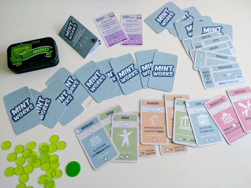 Карточная микроигра на размещение рабочих. Фишка оформления - белые фишки "мятные леденцы", выполняющие функции и рабочих, и денег. Игра понравилась, перевёл, а коллега z0z1ch собрал в готовый комплект (искать на известном форуме). Игра простая и быстрая, хорошо идёт с детьми и новичками. Понятно, что многое зависит от прихода карт-зданий. И если кто-то построил у себя хорошую комбинацию, то догнать его очень сложно.