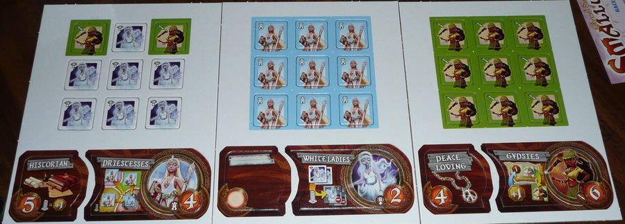 2 десятка карточек с разными персонажами, игроки обмениваются картами, комбинируя персонажей и стремясь набрать большее влияние к концу партии. Персонажи взаимодействуют по принципу "камень-ножницы-бумага". Простые правила, можно играть с новичками.