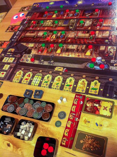 Купил по совету пользователей UFO и Alienka (большое им спасибо!) на сайте "Звезды" всего за 500 рублей. Хотел игру с колодостроем и контролем территорий. Кстати, жене очень понравилась тема с шитьём платьев и размещением гостей в залах дворца (её любимое - "захват контрольных точек" на балконе). Рассказал ей, что изначально тема вообще была про бронирование мест на кладбище, хе-хе. Игра бодрая, ресурсы гоняем туда-сюда, активно мешаем соперникам - очень хорошо!